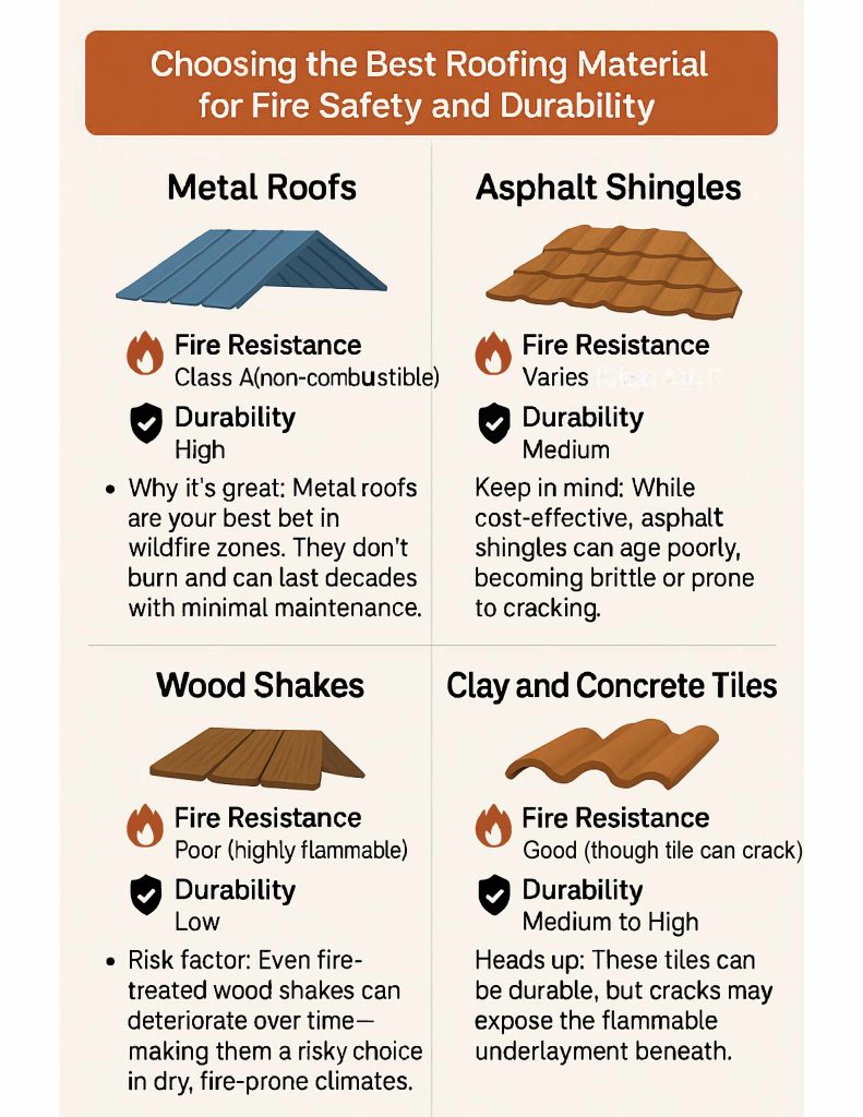 When it comes to fire resistance, metal roofing stands out as the safest, smartest choice. Let’s explore why, and how it compares to other common roofing materials like asphalt shingles, wood shakes, and clay or concrete tiles.